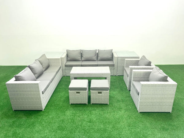 ? This deluxe rattan sofa set is a great addition to patio or garden,made of high quality PE rattan and durable galvanized steel construction for sturdiness and long lasting.Durability ,and can be put outdoor all year round.