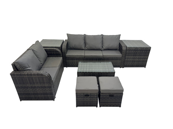 This Modern deluxe rattan garden furniture is best for multiple occasion. The Rattan set is strong durability which lasts for a long time,it also has strong tempered table top glass. Cushions are included and are fitted to the shape of the sofa and chairs for comfort. This wonderful product will help you showcase any garden,patio or conservatory.